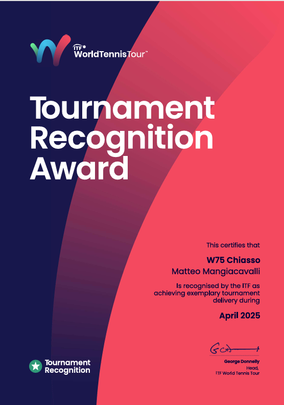 L’International Tennis Federation ha assegnato all’edizione 2025 dell’Axion Open un nuovo Tournament Recognition Award, certificando il torneo W75 di Chiasso come evento capace di distinguersi per standard organizzativi, qualità dei servizi e valutazioni eccellenti da parte delle giocatrici e del supervisor ITF. Si tratta di un traguardo che rafforza il posizionamento del torneo tra gli appuntamenti di riferimento del calendario ITF femminile.